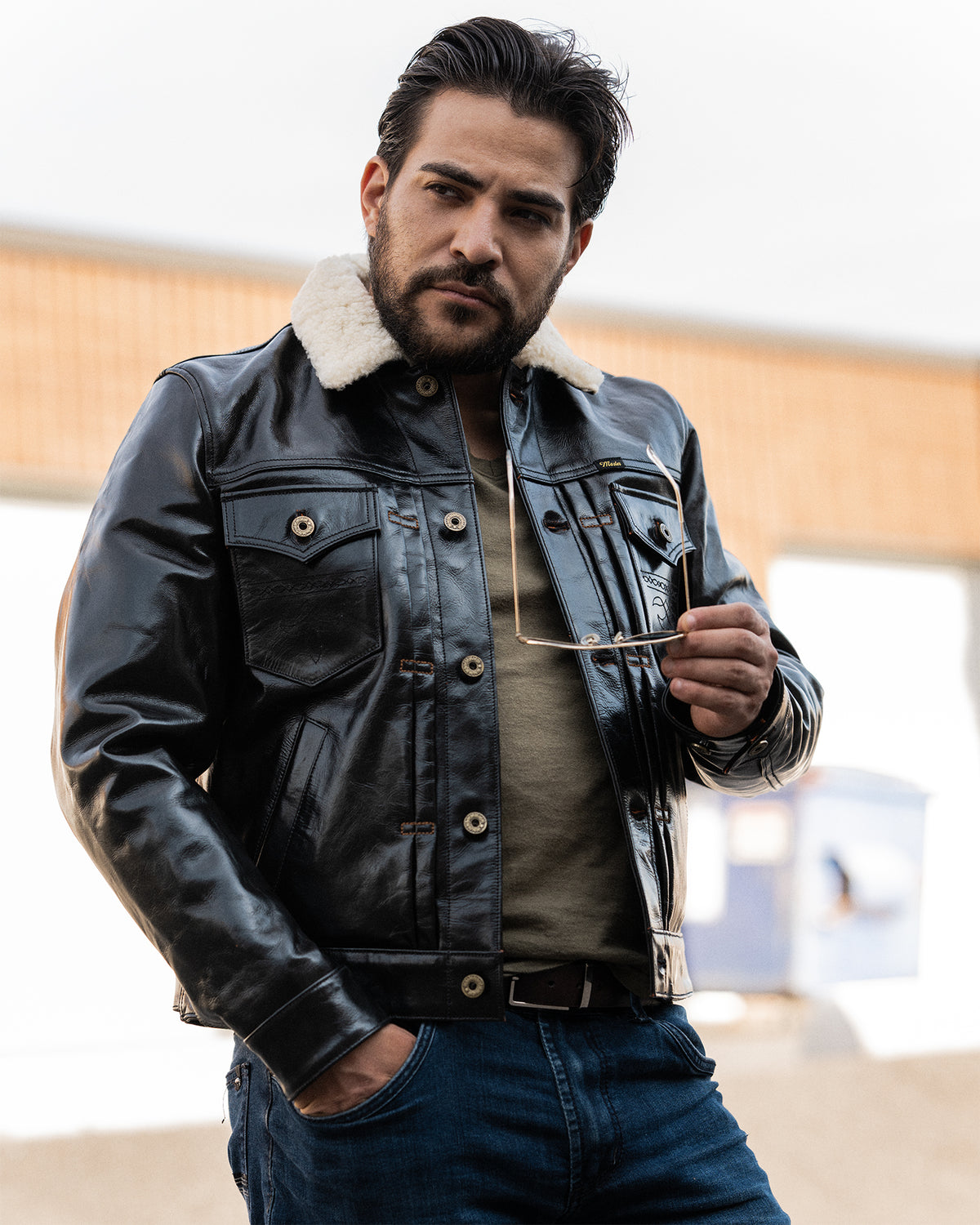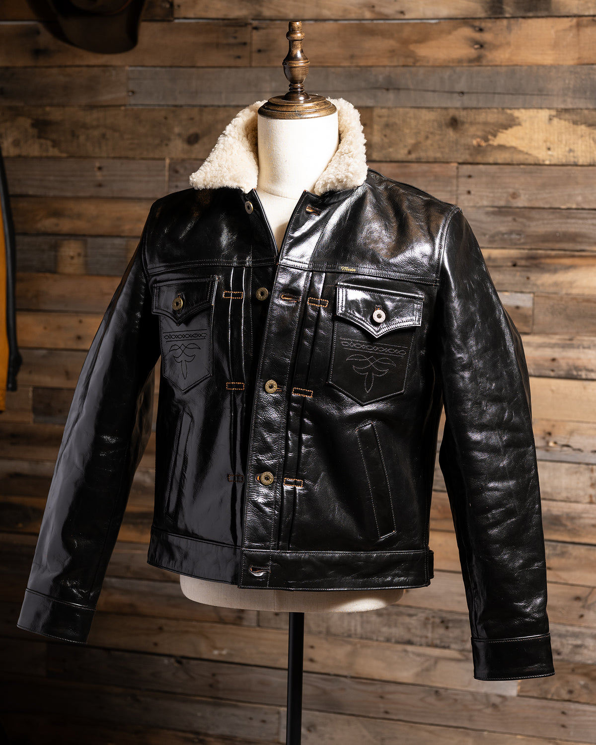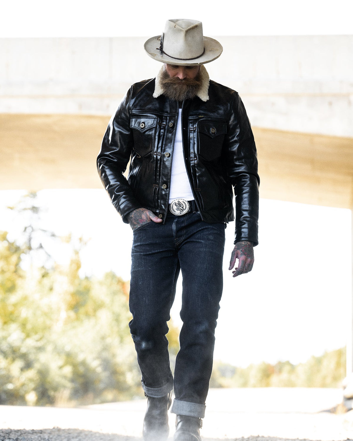 The Master Supply Co. Mark-IV jacket is made from full-grain vegetable tanned tea-core cowhide renowned for its unique patina potential that reveals a rusty brown core as it ages. Our signature pleated trucker silhouette, celebrated for its timeless appeal, is enhanced with symmetrical button placement, contrast pleat stitching, and familiar details like the western yolk and embroidered chest pockets.